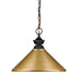 This one light pendant's hardware is finished in olde bronze and paired beautifully with satin gold metal shades.