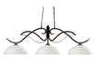 Bold flowing curves define this three light fixture. Finished in bronze, this fixture uses dome matte opal glass shades to create a contemporary, yet classic look. This fixture includes 72'' of chain on both sides to ensure a perfect hanging height.
