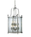 With traditional styling and modern application this eight light chandelier is as versatile as it is stunning. Glass panels form the circular cage that is suspended from swooping arms, which are finished in chrome. Suspended inside are candelabra lights that can be accented with your choice of crystal and chrome finials, as both are included.