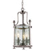 With traditional styling and modern application this three light mini-chandelier is as versatile as it is stunning. Glass panels form the circular cage that is suspended from swooping arms, which are finished in brushed nickel.