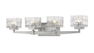 A new personality emerges in a contemporary bath space with the addition of this brushed steel finish four-light vanity light. Chic detailing transforms a steel frame into a work of art complete with crystal cut clear glass shades for an energetic effect.