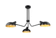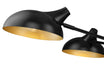 Mid-Century Modern vibes create a bold look with artistry and playfulness, putting finishing touches on the choice of lighting in a casual interior. This light from the Bellamy collection offers an angled design positioning black steel shades and rods that spread out ambient and accent illumination over a kitchen island or entertaining space. Lush gold finishes in the shades' interiors add a dose of glam to a simple yet stylish light.