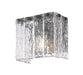 Round black finish steel framing and bolt heads create contrast for the icy cool of this modern one-light wall sconce. A distinctive addition to your living space or vanity, it boasts a rich, refined look perfectly enhanced with clean, square lines and vertical panels of textured clear glass that evoke melting glass. From the Glacier collection, it's a superb choice in a contemporary or architectural home.