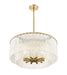 Modern gold finishing adds welcoming warmth and sophistication to this contemporary 10-light pendant. A sparkling centerpiece, it boasts a round, two-tiered silhouette that casts rich, diffused illumination through icy textured glass panels. It's a dynamic addition over a dining table, in your inviting foyer, or as the finishing touch in a sophisticated bedroom.