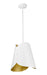 Capture the elegance of tailored perfection in this modern one-light pendant. Its chic presence is beautiful alone or in series, bringing warmth and radiance with a matte white exterior and gold finish interior. The wrapped collar shade design is complete with a decorative button embellishment that offers a refined touch of character.