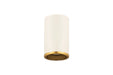 Focus on aesthetics to stylize a contemporary living space, choosing this minimalist-inspired metal flush mount ceiling light. A low-profile yet sophisticated cylinder silhouette is dressed up with a dual finish palette blending matte white and rubbed brass, adding versatility and a light, airy look with a touch of glam.