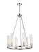 Gleaming polished nickel finish metal embellishes the sparkling glass shades that come to life in a modern space, transforming the Beau six-light chandelier into a sophisticated option for illuminating a compact living area. This design-forward fixture offers an unforgettable aesthetic with a shiny polished nickel steel frame and accents and evenly placed slender fluted glass shades. The consistency in materials speaks to an updated transitional theme that delivers versatility, a fresh feel, and a superb source of ambient lighting in a kitchen or living space.