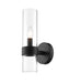 A bold matte black metal frame offers a hint of drama to this distinctive Datus one-light wall sconce. Contemporary vibes infuse an easy-living attitude with prominence in a sleek design featuring a slender clear glass cylinder shade mounted to a matte black finish solid steel frame and mount. Bring ambient lighting to a hallway, bath space, or main living area with this sconce with a minimalist yet impressionable flavor.