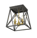 Indulge in an exercise of geometrics and stunning interior décor, adding this three-light flush mount ceiling light to a main living space. Bold Matte Black delivers a stunning finish to an angular metal frame with a lush Old Brass finish candelabra bulb mount.