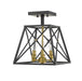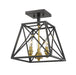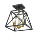 Indulge in an exercise of geometrics and stunning interior décor, adding this three-light semi-flush mount ceiling light to a transitional living space. Enjoy the energetic ambiance of a trestle-inspired open metal cage frame with a sleek Matte Black finish, and a charming candelabra bulb mount with a rich Old Brass finish.