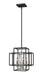 Modern and metropolitan in style, this black and brushed nickel steel four-light pendant's softening features render a splendid décor element perfect for transitional spaces. An eye-catching open boxy frame reveals romantic candelabra-style bulb bases in a sleek brushed nickel finish, creating a captivating contrast and a stylish fixture to highlight a dining ensemble or entryway.
