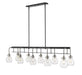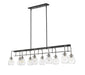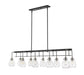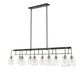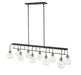 A dual-tone finish changes up the personality of this dynamic ten-light island chandelier. Soak up the charm in an industrial-themed design with a linear frame in matte black and brushed nickel, and clear glass shades that offer a slightly fragile feel.