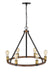 With an open silhouette constructed of faux barnwood, this six-light chandelier boasts a rich rustic mahogany finish. Exposed lightbulbs line the airy ring that creates the charming silhouette.