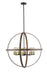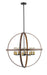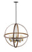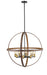 Exposed lightbulbs nestle inside open rings in this eight-light pendant light. Stylish and richly hued, the faux barnwood construction boasts a warm rustic mahogany tone.