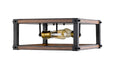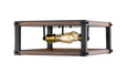 Sleek angles and rich tones combine to make this three-light ceiling light a beautiful addition to any warm space. The clean lines of the silhouette are constructed of faux barnwood in a rustic mahogany tone.