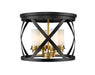 Enhance your home lighting with the eclectic charm of this two-tone four-light flush mount light. It features a combination matte black and olde brass finish in a stylish round design highlighted by an X-cross pattern. You and yours will enjoy the immediate upgrade in ambiance this light brings to any hallway, bedroom, dining room, or living room.
