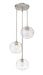 Express your modern aesthetic with this eye-catching three-light pendant. Grooved, rounded shades are made from clear glass, suspended from a sleek steel frame with a brushed nickel finish. The fixture brings a chic cutting edge to a contemporary kitchen or dining room.