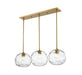 Define your modern space with the eye-catching, streamlined presence of this billiard style three-light pendant. Rounded shades are made from clear, water-textured glass, suspended from a sleek steel frame with an olde brass nickel finish. Your contemporary dining room or family space gets an instant boost with this sophisticated fixture.
