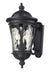Traditional and timeless, this large outdoor wall mount combines black cast aluminum hardware with clear water glass for a classic look.
