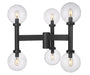 Glowing light sourced from a decadent fixture lifts the elegance in an exterior space when this six-light outdoor post mount fixture sits ready for placement. From the Laurent collection, it preserves a classic village aesthetic with a sophisticated, straightforward linear aesthetic. A black finish aluminum frame makes a stunning venue to host six delicate clear seedy glass globe shades, creating an impressive festive look.