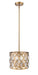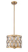 Crystal-inspired accents from the rounded shade on this hanging ceiling light create a multidimensional glow. Elongated lines are given a vintage-inspired feel with a heirloom brass finish.