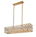 Complete a vintage-inspired living area with the elongated style of this hanging ceiling light. The open rectangular shade boasts a radiant heritage brass finish that encases reflective crystal accents.