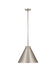 Choose an industrial-inspired look with the Eaton one-light pendant, a superb option for low-key lighting in a custom space. This pendant features a sleek conical silhouette with a shade, down rod, and canopy crafted of iron and given a brushed nickel finish. Line up a collection to illuminate a kitchen island, or place this light individually around a living space for an easy, casual feel.