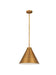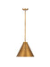 Choose an industrial-inspired look with the Eaton one-light pendant, a superb option for low-key lighting in a custom space. This pendant features a sleek conical silhouette with a shade, down rod, and canopy crafted of iron and given a warm rubbed brass finish. Line up a collection to illuminate a kitchen island, or place this light individually around a living space for an easy, casual feel.