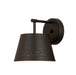 This one-light wall sconce from the Maddox collection creates a seamless, easy-living look for casual spaces in need of extra lighting. Matte black finish iron adds a decadent look to a sconce featuring a conical shade with a texturized hammered belt detail and matching wall mount. Dress up a bathroom or hallway space with this elegant light that incorporates farmhouse and industrial motifs.