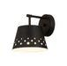 A striking look of sophistication sneaks in whimsical charm when this one-light wall sconce brings festive vibes to any casual space. This sconce from the Katie collection delivers an upbeat flavor with its bold matte black finish iron construction and novel circular cutouts that add character as they let light shine through.
