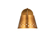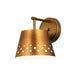 A striking look of sophistication sneaks in whimsical charm when this one-light wall sconce brings festive vibes to any casual space. This sconce from the Katie collection delivers an upbeat flavor with its warm rubbed brass finish iron construction and novel circular cutouts that add character as they let light shine through.