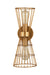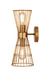 A cage-like design offers a hint of industrial inspiration to this energizing two-light wall sconce, a superb choice for a custom casual space. Light up a hallway, bathroom, or bedroom with this sconce from the Alito collection offering geometric elegance in a concave silhouette and thin wires made of warm rubbed brass finish iron. Adding separately purchased vintage style bulbs changes up its motif to reflect versatility.