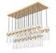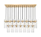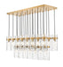 Dive into the warmth and luxurious opulence with this modern 23-light linear chandelier. Its sophisticated presence is defined with three rows of luxe water glass shades and a rubbed brass finish, creating inviting warmth and sophistication over a spectacular space.