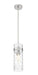 Encourage a sophisticated ambiance with the luxe look and feel of this modern one-light pendant from the Fontaine collection. It pairs a cylinder of clear water glass with a brushed nickel finish collar and canopy and rods, offering refined, but understated luxury alone or in multiples over a larger space.