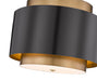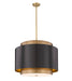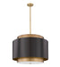 A bold, designer look, the impressive Harlech collection four-light pendant delivers a charming layered, double pendant design. It skirts the line between modern and industrial design motifs, creating a charming, character rich addition. Perfect for the foyer or over a breakfast nook, the pendant boasts a warm rubbed brass inner drum, with a shorter, wider bronze finish drum layered on top for a dimensional look and feel.
