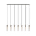 Welcome the orderly silhouetting and contrasting glam artistry of a light fixture with design power. Choose this seven-light linear chandelier to make a statement in a custom contemporary space, embracing a careful arrangement of delicate fluted glass shades that dangle at graduated lengths from a cool brushed nickel canopy, delivering a captivating example of radiance and fluidity.