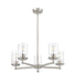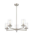 Complete a timeless kitchen or living area with the understated flair of a modern five-light chandelier from the impeccable Thayer collection. Clean lines and gentle curves highlight its silhouette, with cylinders of smooth, clear glass surrounding each light and offering a light, airy ambiance over a breakfast nook or entryway. A classic brushed nickel finish adds the perfect touch of sleek sophistication.