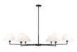 Surrounding decor is instantly elevated with the sleek simplicity of a stylishly modern, wide six-light chandelier. In a cool matte black finish, this delightful fixture is a flexible option everywhere from your dining room to a master suite, casting warm, bright illumination while instilling radiant elegance. Its six lights are complete with empire shades for a classic touch updated with white linen for light, bright ambiance.