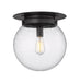 Customize your space with a light fixture blending Mid-Century Modern style with schoolhouse and industrial charm. This one-light flush mount from the Calhoun collection delivers a shapely, symmetrical silhouette with a frame and accents featuring bold matte black finish metal. A festive clear seedy glass globe shade adds a dose of elegance suitable for any application.