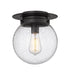 Make a signature statement with the chic style of a light fixture offering a clean aesthetic and charming personality. From the Calhoun collection comes a one-light flush mount mixing the versatility of Mid-Century Modern and schoolhouse genres. With a bold matte black finish metal frame, and a delightful clear seedy glass globe, this fixture sheds ambient lighting in any application.