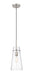 An elongated cone of clear glass sets the tone for a modern one-light pendant. Infused with minimalist elegance, it showcases a simple, sleek housing and suspension for a crisp, clean look and feel in your kitchen, living room or powder room. A brushed nickel finish is crisp and timeless, setting the tone for surrounding decor.