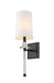 Sophisticated and tasteful design elements blend matte black and brushed nickel finish steel with crystal accents and a fresh white fabric shade, making this single-light wall sconce an optimal choice for a modern or transitional space. Perfect for a bathroom and vanity, bedroom, or hallway, this elegant light captures the traditional lamp design with modern twists and offers extraordinary versatility.