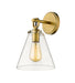 This contemporary one-light wall sconce devotes attention to detail as it delivers fresh, inspiring materials. Make a modern bathroom, bedroom, or hallway come to life with a fixture featuring rubbed brass finish steel and a conical clear glass shade.