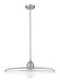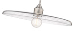 Smooth, clear glass creates a wide disc to deliver the true illumination of this modern one-light pendant. Delivering a compelling mix of whimsy and retro ambiance in any room, the fixture pairs a sleek brushed nickel finish with a simple, clean silhouette that promises bright illumination in a stylish but understated profile.