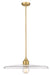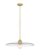 Smooth, clear glass creates a wide disc to deliver the true illumination of this modern one-light pendant. Delivering a compelling mix of whimsy and retro ambiance in any room, the fixture pairs a warm olde brass finish with a simple, clean silhouette that promises bright illumination in a stylish but understated profile.