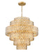 Briming with treasured glamour and elegance, this Dealey collection 17-light pendant delivers an impressive six-tiered design that glitters over a staircase or in a grand dining room. Each tier features an heirloom brass finish drum complete with oval cutout filled with sparkling crystals that create a magical ambiance that takes surrounding decor to new design heights.