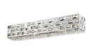 Laser-cut rectangles and crystal emblems dazzle and shine on the steel frame of this six-light vanity light. Frame a custom sink with an unforgettable fixture fashioned from chrome finish steel and highlighted with glam crystal accents.