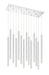 Revel in the sophistication of modern sculptural design with the windchime-inspired silhouette of this fourteen-light pendant light. Full of crisp and elongated shapes, the lights feature a bright chrome finish.