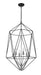 Fully energizing in its sleek geometric silhouette, this six-light chandelier delivers sophistication and contemporary verve in a modern living or dining space. Follow the angles of an open cage-like frame fashioned from two-tone finish metal in Matte Black and Chrome, and a busy yet symmetrical outline.