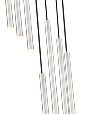 A spiraling, staggered configuration of elongated shades creates sculptural allure for this modern seven-light chandelier. It's outfitted with integrated LED lights that are both dimmable and energy efficient, perfect for an eco-friendly home. The fixtured brushed nickel finish is clean and refined, sure to complement in a variety of spaces.